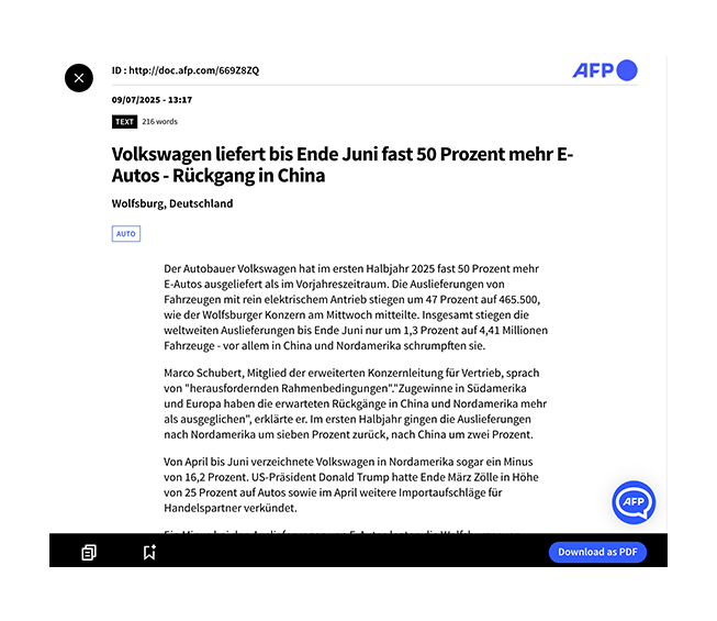- Exklusive Inhalte : Verbessern Sie das Kundenerlebnis, indem Sie die exklusiven Inhalte von AFP in Ihre Markenumgebung integrieren.