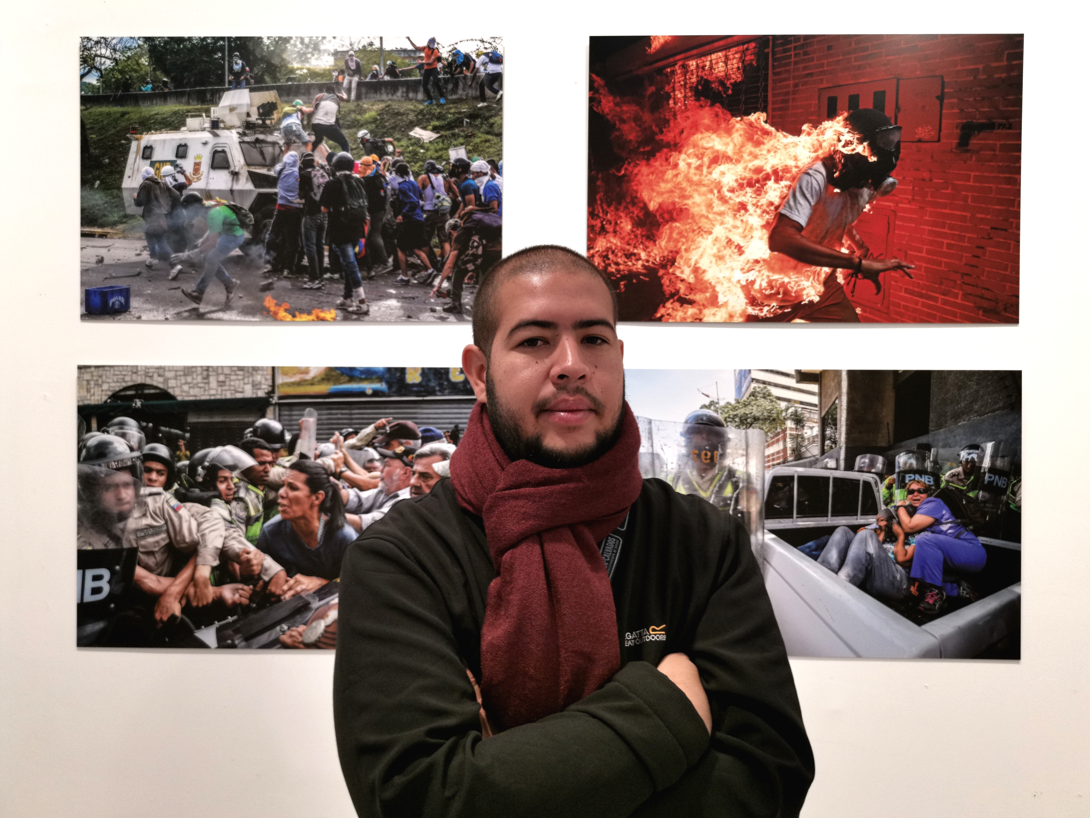 10 de octubre de 2019 – Bayeux, Francia – Yorman Maldonado durante su visita a la exposición de AFP Venezuela: la caída sin fin.