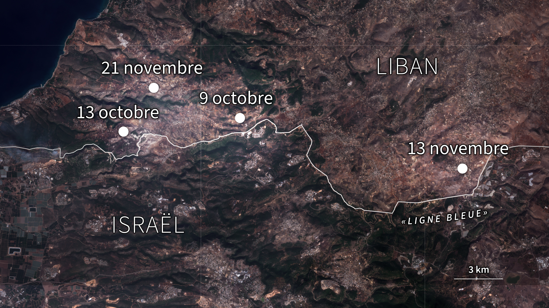 Ce vendredi 13 octobre, aux environs de 16h30, les correspondants d'Al Jazeera Carmen Joukhadar et Elie Brakhya sont les premiers à arriver sur place après avoir reçu des alertes faisant état de bombardements près d’Alma el-Chaab. Entre ce village libanais et la localité israélienne de Hanita, qui lui fait face, serpente la “Ligne bleue”, ligne de démarcation de près de 80 km de long surveillée par l'ONU.
