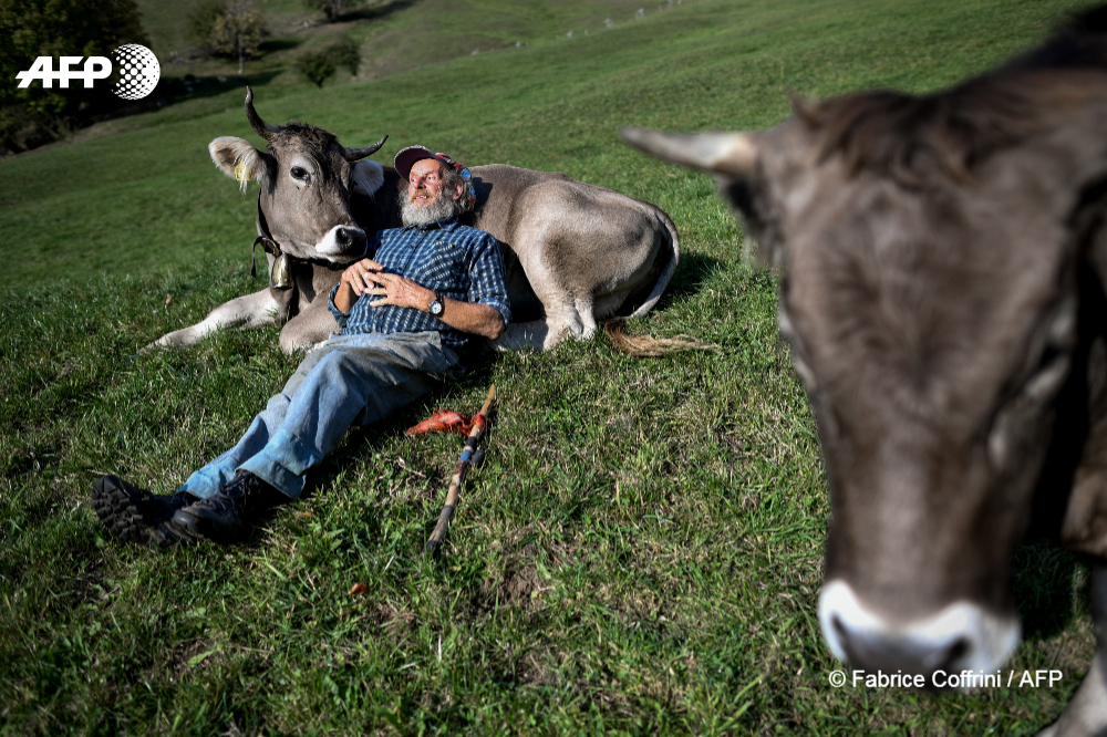 16/10/2018 - Perrefitte, Suisse -  Fabrice Coffrini se place également au 3e rang dans la catégorie Portrait avec ce cliché, réalisé pour l'AFP, d'Armin Capaul, l'homme qui a lancé l'initiative autour des cornes des vaches suisses.
