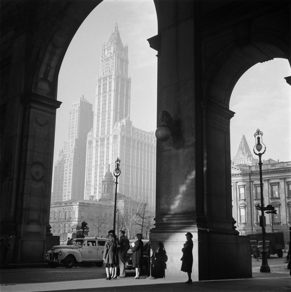 Après avoir été témoin des horreurs de la Seconde Guerre mondiale, Eric Schwab s’est envolé pour les États-Unis pour y photographier… la vie quotidienne. Ici, en janvier 1947, des New-yorkais patientent à un arrêt de bus en janvier 1947. À l’arrière-plan, le Woolworth Building, l’un des plus anciens gratte-ciels de Manhattan.