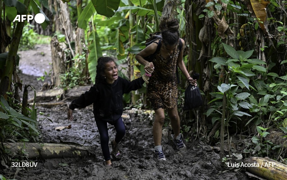 Luis Acosta, est finaliste de la catégorie avec l’image d’une jeune migrante vénézuélienne aidée par sa mère alors qu’elles arrivent au village de Canaan Membrillo, le premier contrôle frontalier de la province du Darien au Panama, le 13 octobre 2022. Le voyage clandestin à travers la dangereuse jungle du Darien, zone montagneuse et marécageuse, dure généralement 5 à 6 jours, à la merci des intempéries, de la faune sauvage mais aussi des trafiquants de drogue qui utilisent ces routes pour acheminer la cocaïne vers l’Amérique centrale.