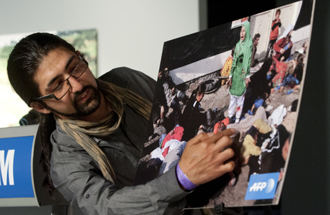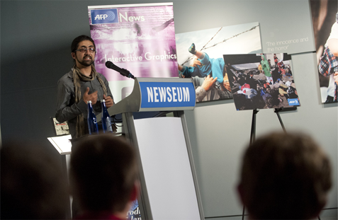 Le reporter-photographe afghan de l'AFP Massoud Hossaini était l'invité du Newseum le 24 mai à l'occasion d'une exposition de photographies distinguées par des prix Pulitzer.